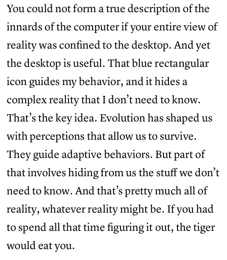 Does evolution maximize fitness by driving truth to extinction? The evolutionary argument against reality. https://www.quantamagazine.org/20160421-the-evolutionary-argument-against-reality/ …