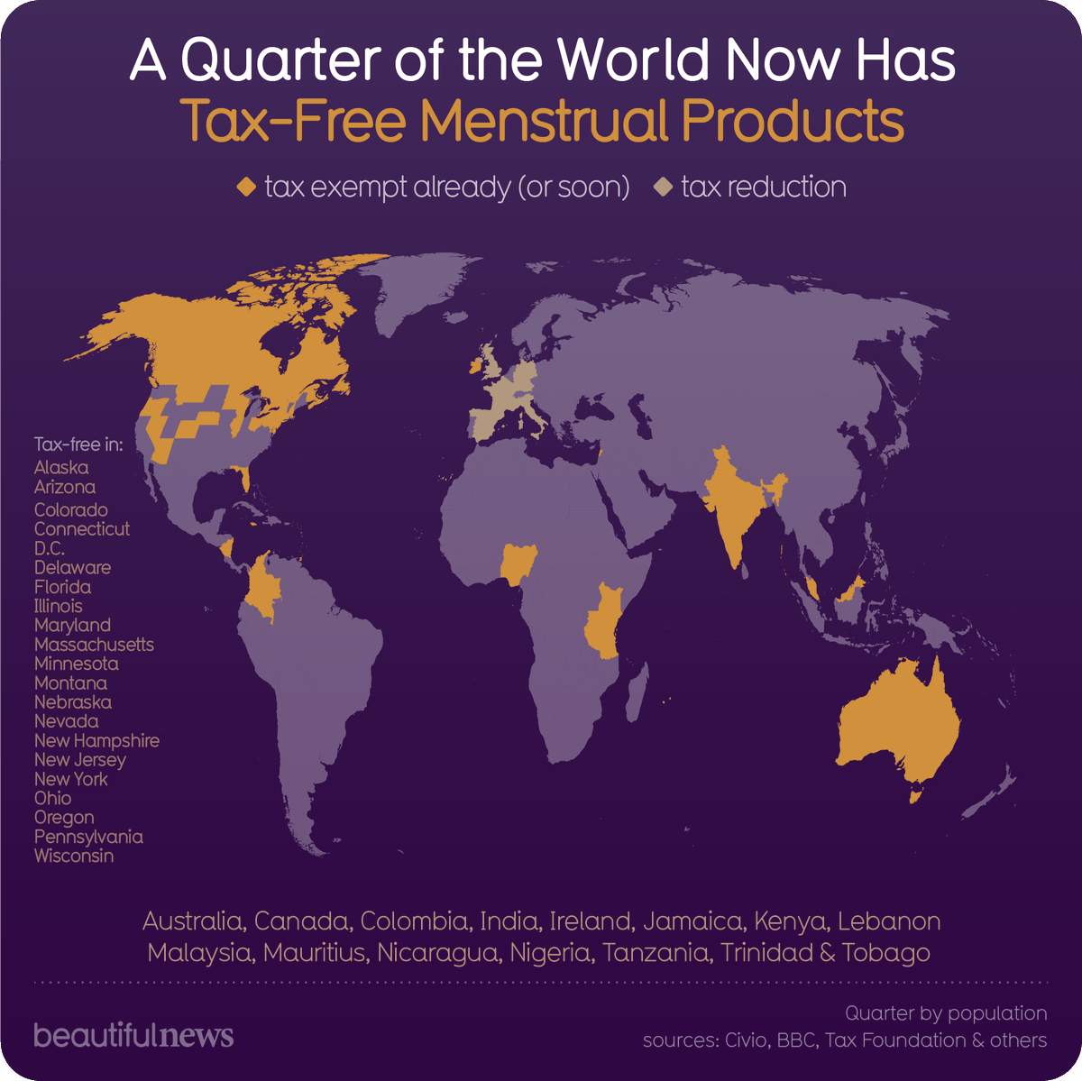 In some parts of the world, menstrual products are still taxed more heavily than hotel bookings, truffles or caviar. https://beautifulne.ws/823