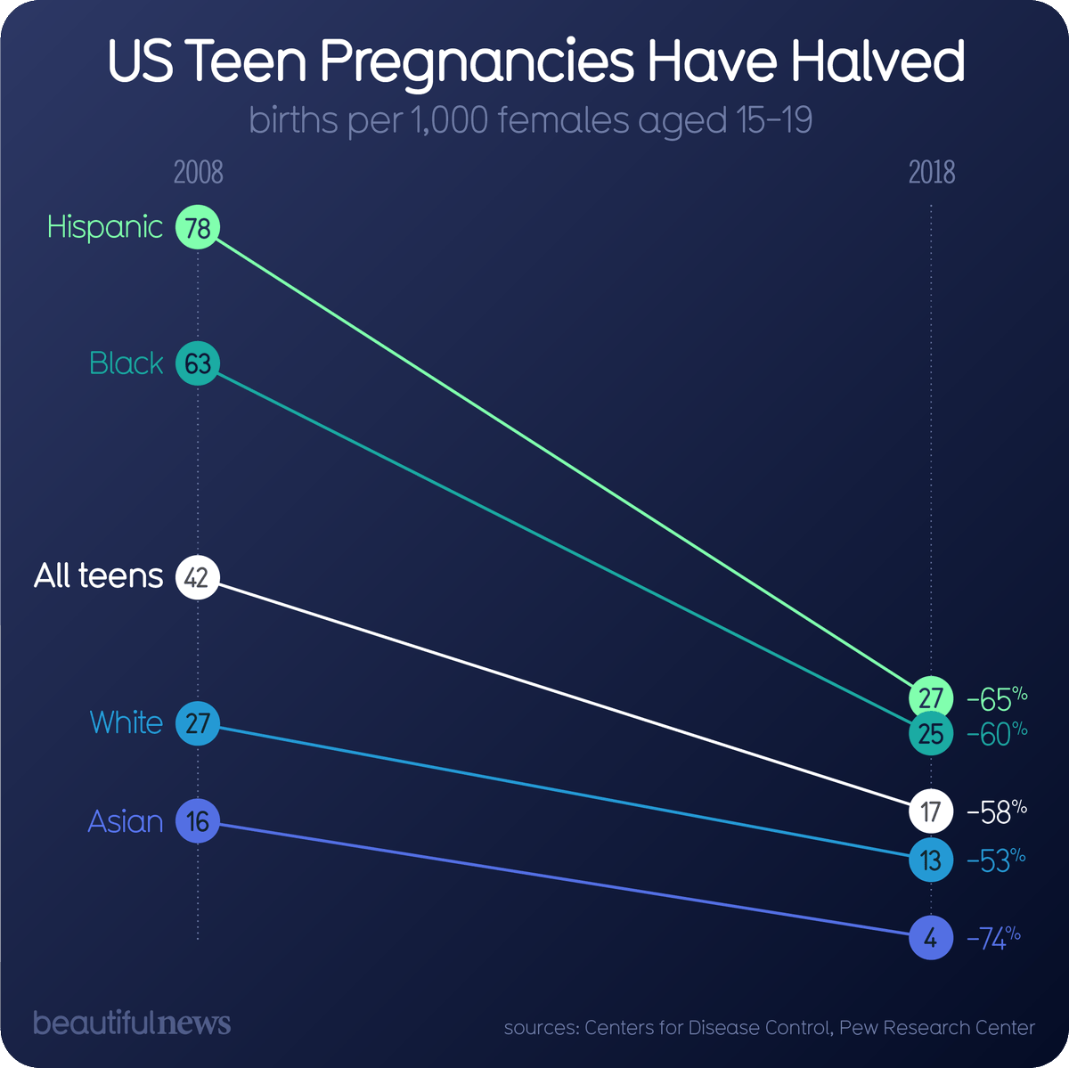 Thanks to improvements in sex education, US teen pregnancy rates have turned a corner. https://beautifulne.ws/1015