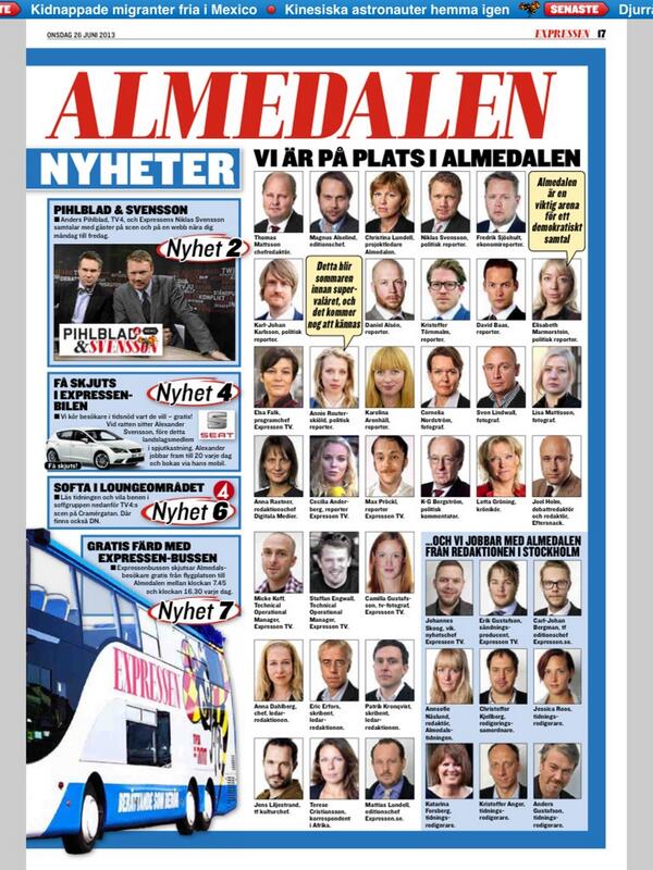 @Expressen visar vem som tänker vara nyhetsledande från Almedalen. Har de samma samarbete mellan ledare/red som AB?pic.twitter.com/DljR0Tjfgc