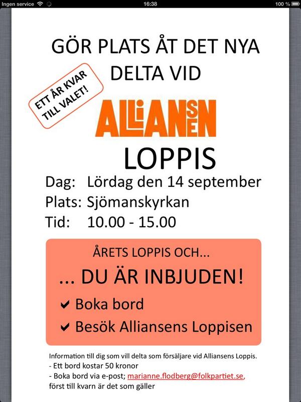 Det finns #50skäl för dig att boka bord på alliansens loppis i Gävle den 14/9 #svpol #alliansen #loppispic.twitter.com/BPDBI4RLhL