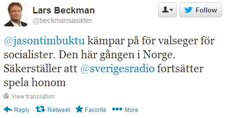 Lars Beckman‏ @beckmansasikter 5 Nov 2013