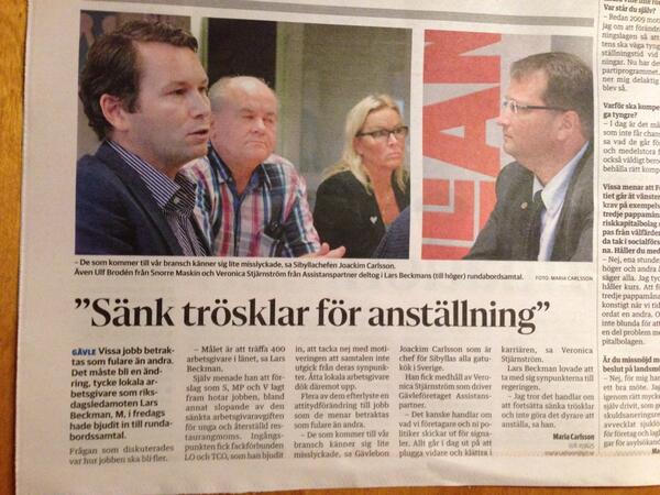 Artikel i Gefle Dagblad från fredagens rundabordssamtal om hur jobben kan bli fler i Gävleborg #svpol #Gävle #50skälpic.twitter.com/NVU1Jmmnw3