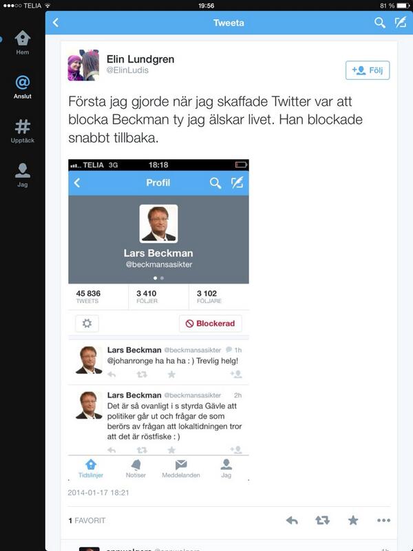 En av Gävles socialister skriver att hon är blockad av mig men då hade det väl stått blockad här? #Gävlepic.twitter.com/crRMx92v14