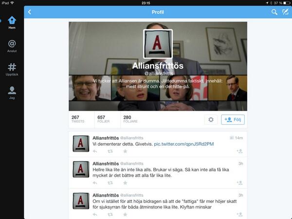 @Solsjo @alliansfritt prova att följa dem. @alliansfritts och alliansfritt verkar vara kusiner