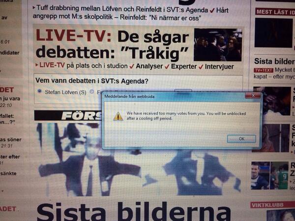 @HannahBergstedt jag misstänker att du inte försökte rösta på Fredrik så då måste det vara ett stort tekniskt fel på @aftonbladet :)