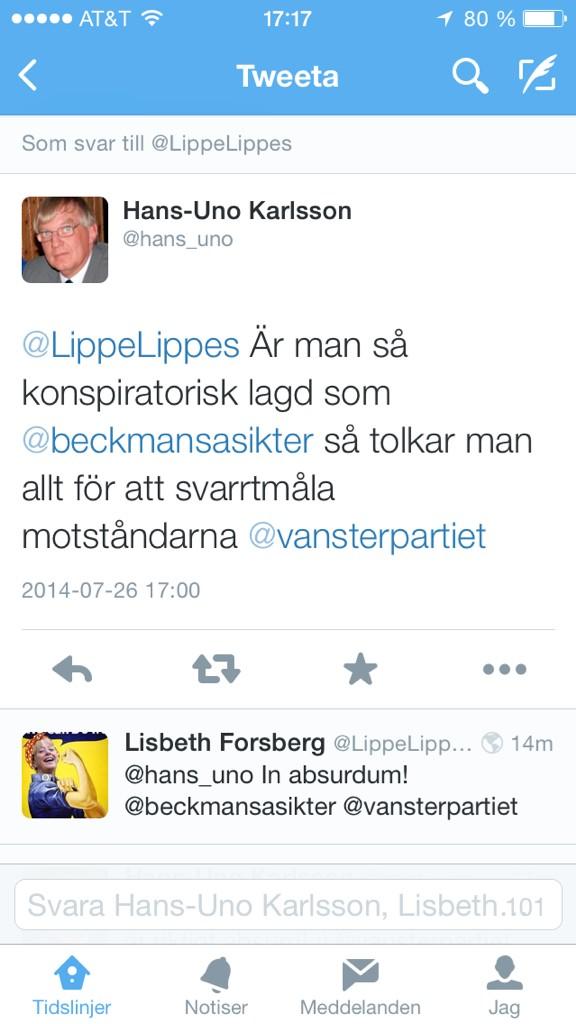 @beckmansasikter Men!!? Skärp till dig! Tänker du svara lr slingra?@hans_uno@vansterpartietThanks. Twitter will use this to make your timeline better. UndoUndo