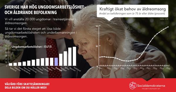Vi vill stärka bemanningen i äldreomsorgen samtidigt som vi ger ungdomar jobb och utbildning. #svpol #val2014pic.twitter.com/94UZ48h5BJ