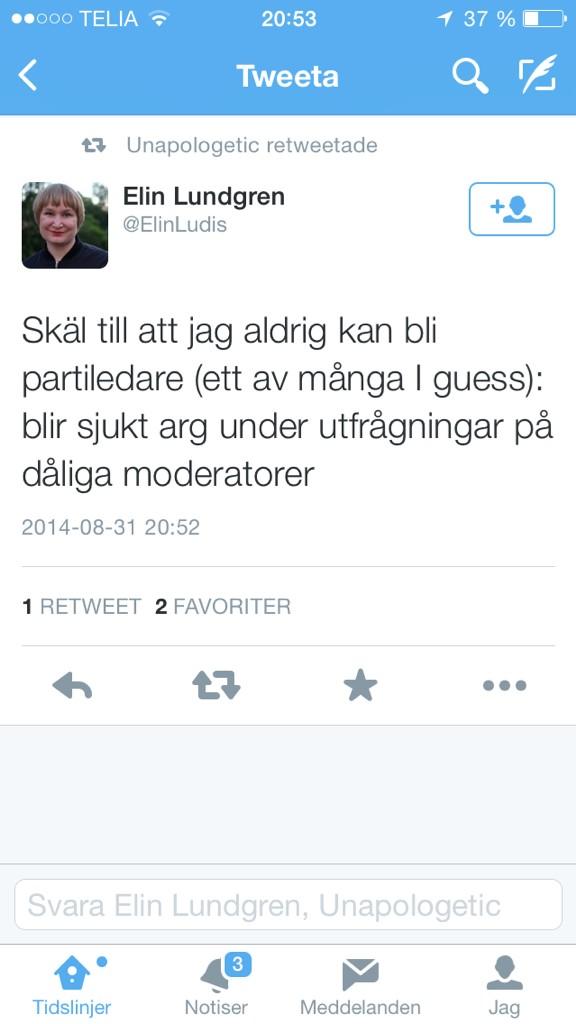 Visst har det varit ovanligt tyst på Twittervänstern i kväll eller hur @beckmansasikter. Eller utreder de? #dinröst
