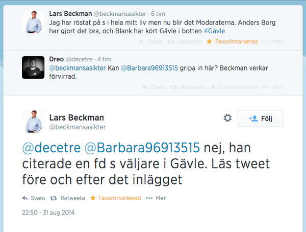Haha! @beckmansasikter försöker sig på en "bra sagt Dan" med fejkkonto. Går sådär. Avslöjar sig 2 gånger #BrasagtLarspic.twitter.com/pnkGsHkIA5