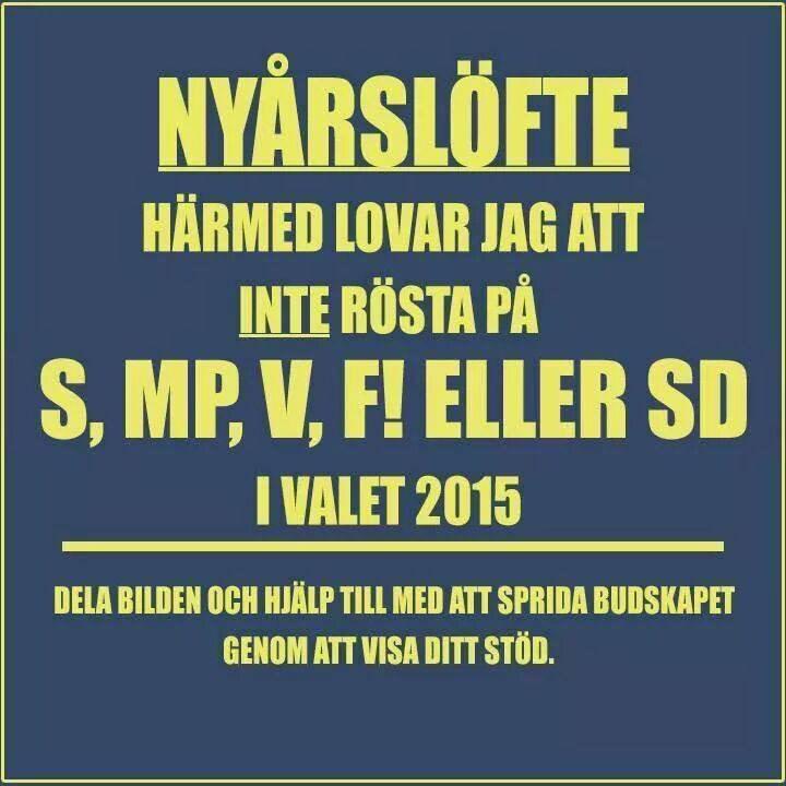 Sprid vidare. Sverige behöver en stabil och trygg alliansregering i valet 2015! #svpol #dinröst #nyårslöftepic.twitter.com/Q9w7ju91lv