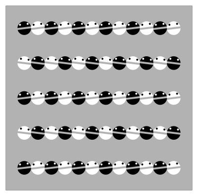 Although each line made of snake's mouths is horizontal, the uppermost one appears to tilt counterclockwise, and the next one clockwise, and so on. This tilt illusion is the Fraser illusion. In addition, each row appears to sway horizontally.pic.twitter.com/PnlMVI0Nzd