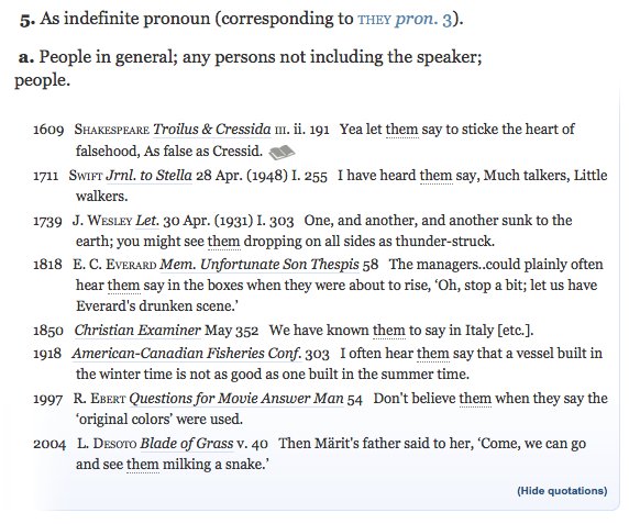 "they/them" as singular pronoun is a usage w literal centuries of attestation and anyone who argues otherwise is a douche. - an English PhDpic.twitter.com/zrKkoMuYML