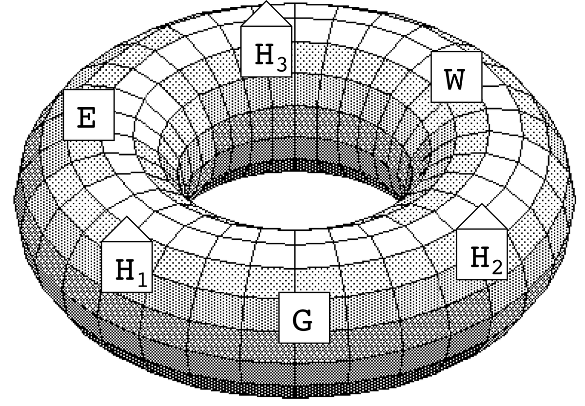 Here's a 🍩 problem to celebrate 'Geometry Snacks' being delivered today : Can you solve the "Gas, electricity, water problem" on a torus ? Connect each of the three (H)ouses to (G)as, (E)lectricity and (W)ater. @solvemymathspic.twitter.com/NFTBg7fThn