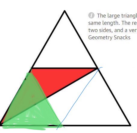 Oui cool, moi je le vois plutôt comme ça le triangle équilatéral du haut a une aire égale au quart du grand, et 1/2-1/4=1/4