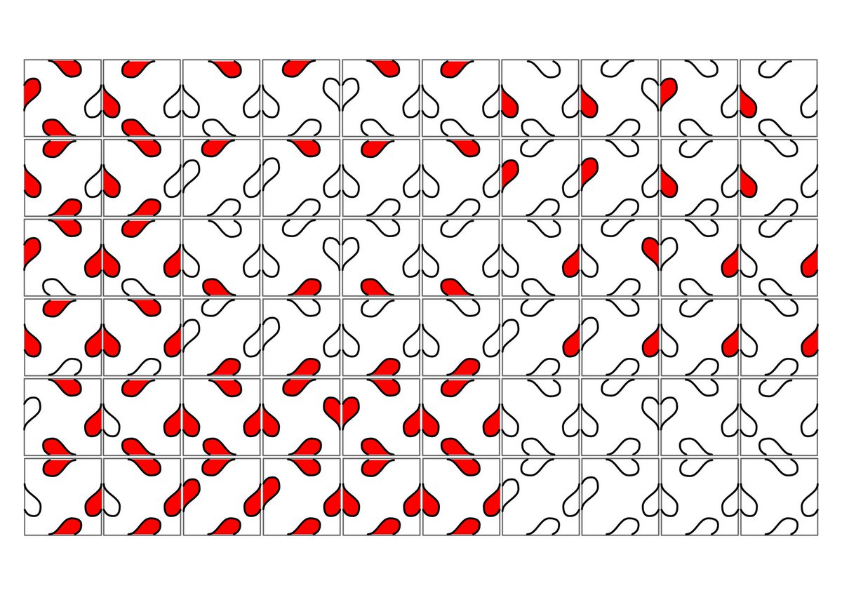 I made a new game ! Not sure about the rules yet, but the idea is : • 2 players, red vs white, • sides of cards must match to make a heart, red & white is OK (?) • player with the most full hearts wins.pic.twitter.com/Djngo5oIoQ