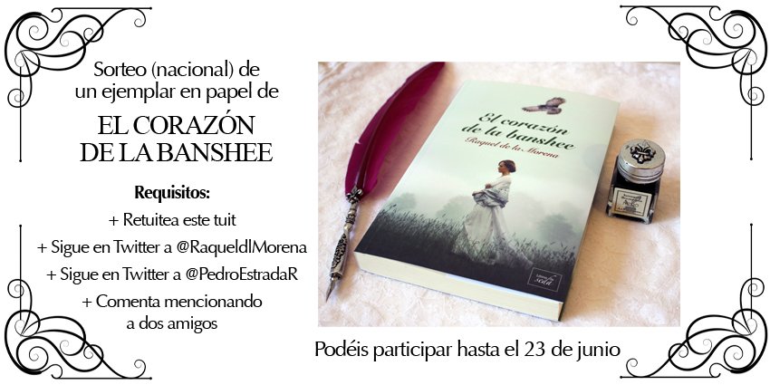 , @PedroEstradaR y yo sorteamos a través de Twitter un ejemplar de mi romance histórico 'El corazón de la banshee'. Ya podéis participar, ¡en la imagen tenéis las bases!