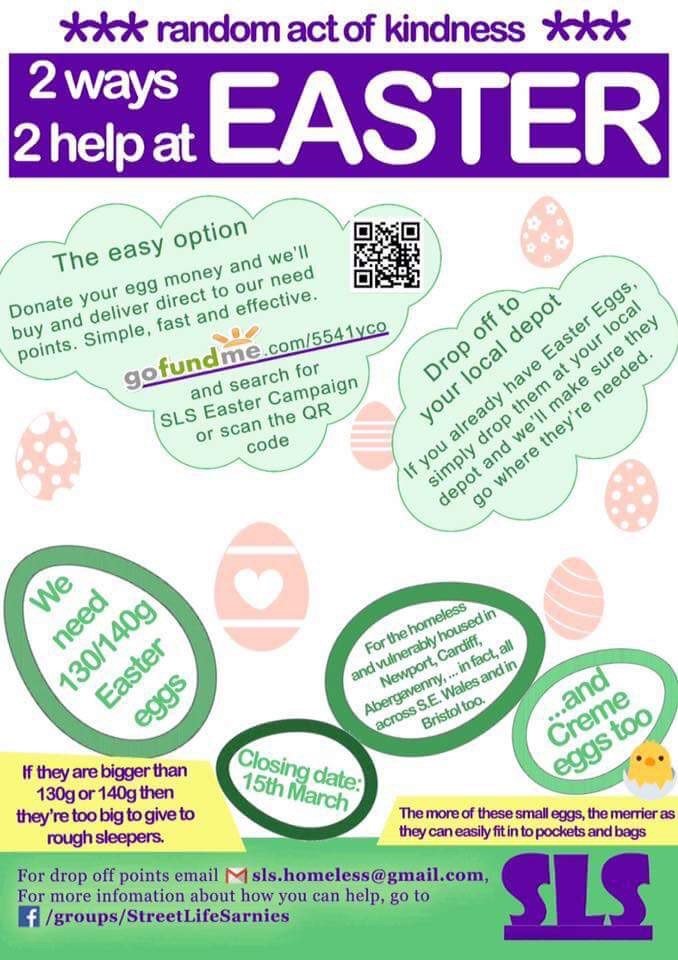 #EasterEgg in your trolley to support@StreetSarnies All the eggs go to homeless and vulnerably housed people. You can drop your boxed eggs (130-140g) or creme eggs to our offices by Friday March 16th.pic.twitter.com/JvjMWwT16u