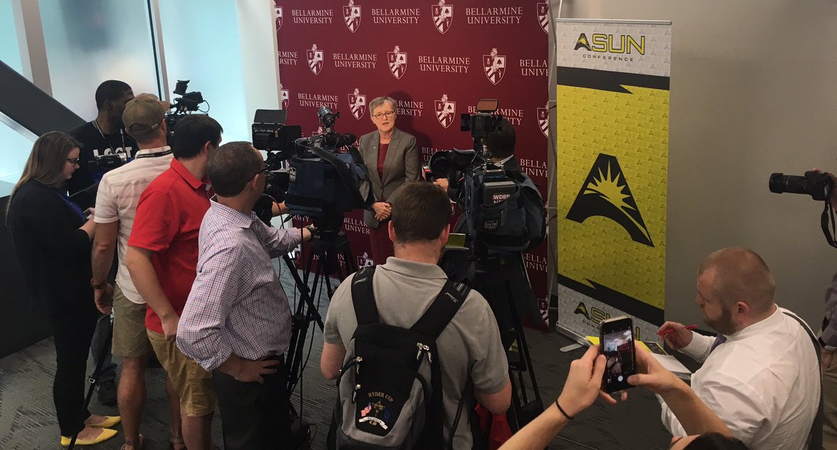 @bellarmineU and our new strategic plan. Thanks to#loumedia for coming by to talk about our new Division I@ASUNSports membership on Tuesday!#BellarmineRisingpic.twitter.com/Hg7wQeArRj
