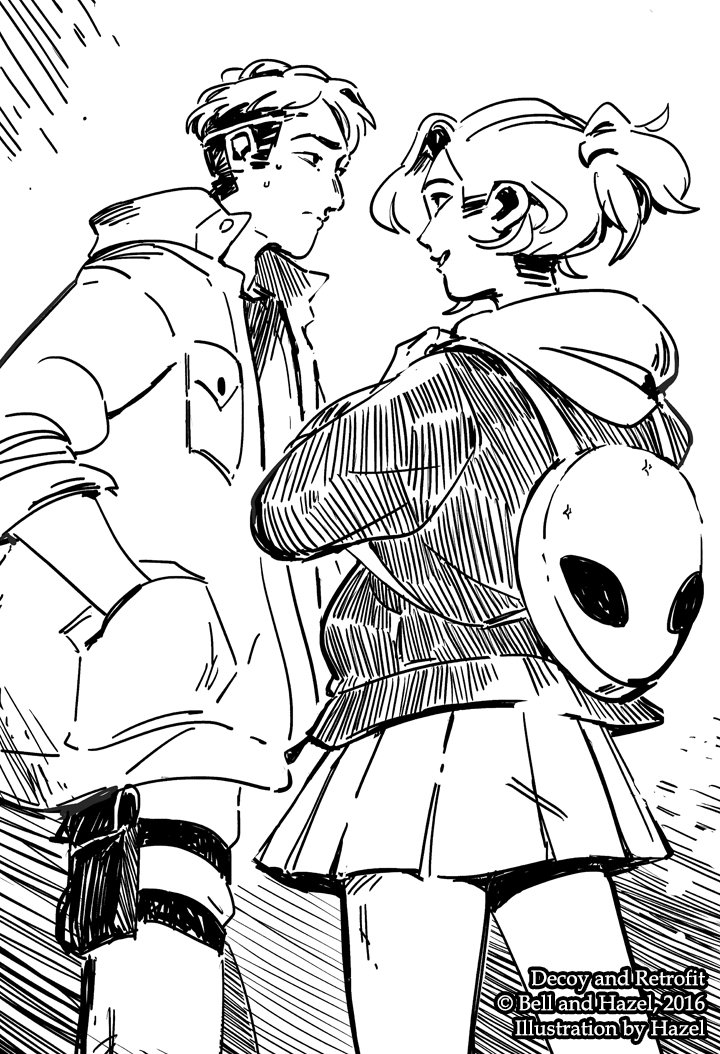Some Decoy & Retrofit stickers we sent out on our patreon for the month of July! I really like drawing these two!