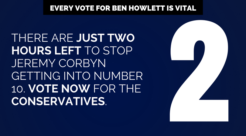 3 hours left to vote! Make sure you get out and vote to ensure Theresa May is the one negotiating