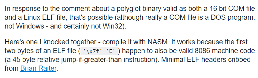 Also can create an executable that runs on both DOS and Linuxhttps://twitter.com/ben_a_adams/status/1219305531904593928 …