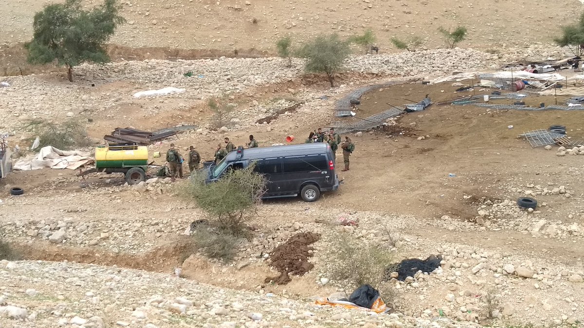 About 15 armed Israeli soldiers guarded the area, though no one resisted. This is a co-ed battalion where female soldiers participate in so-called "operational activity". In this case, destroying the livelihood of some of the poorest Palestinians in the West Bank.pic.twitter.com/DBwgNsHD9c