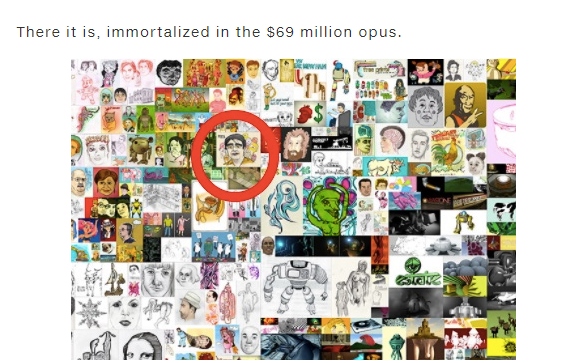 https://news.artnet.com/opinion/beeple-everydays-review-1951656 … TL;DR: "Expensive art should be palatable!" His sign off: "These are the questions that go through my head. But that’s probably just “fancy-dancy elite art homo” thinking, right?" Yes, lol