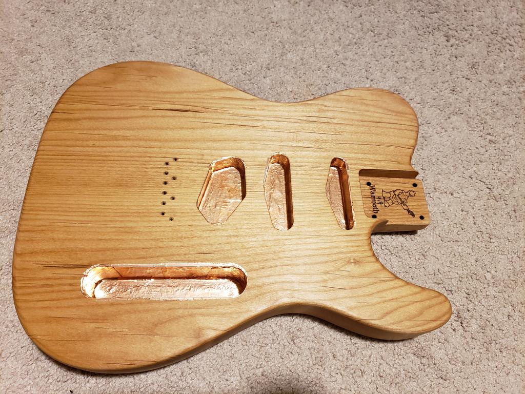 Good progress this weekend! The neck needs 2 more coats of gunstock oil followed by some wax. If all goes well it should be playable next weekend.pic.twitter.com/PuZCaTWu1z