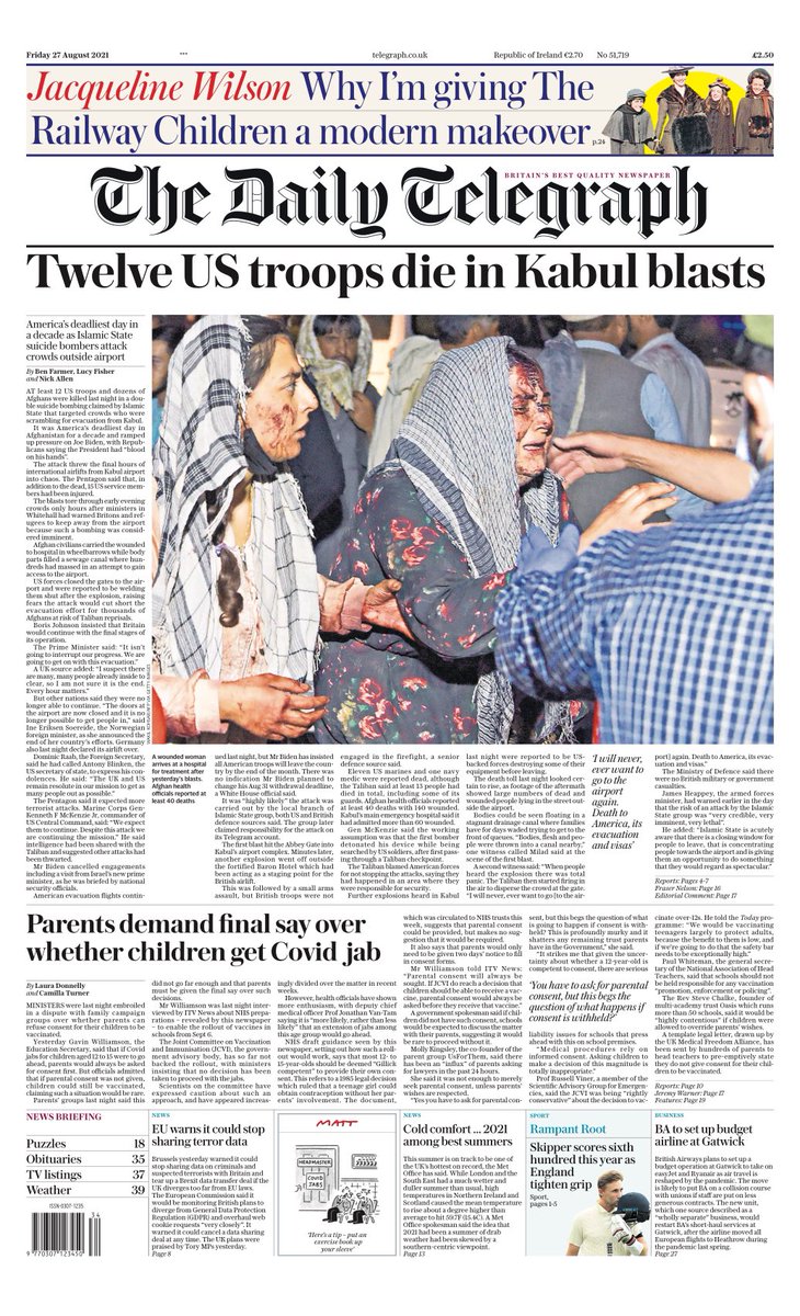 Scores of dead Afghan civilians, including children. No space for them in the headline? Their lives don't matter? Too often, the Western media is appalling.https://twitter.com/hendopolis/status/1430997272582660097 …