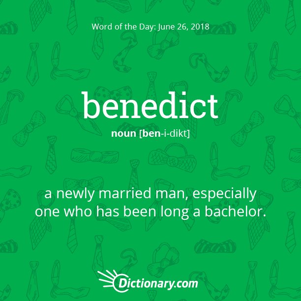 It's wedding season! Today's Word of the Day is benedict. 🤵🤵 Read the full definition here: http://bit.ly/2JUhV6R  pic.twitter.com/Yp8QytKPrX