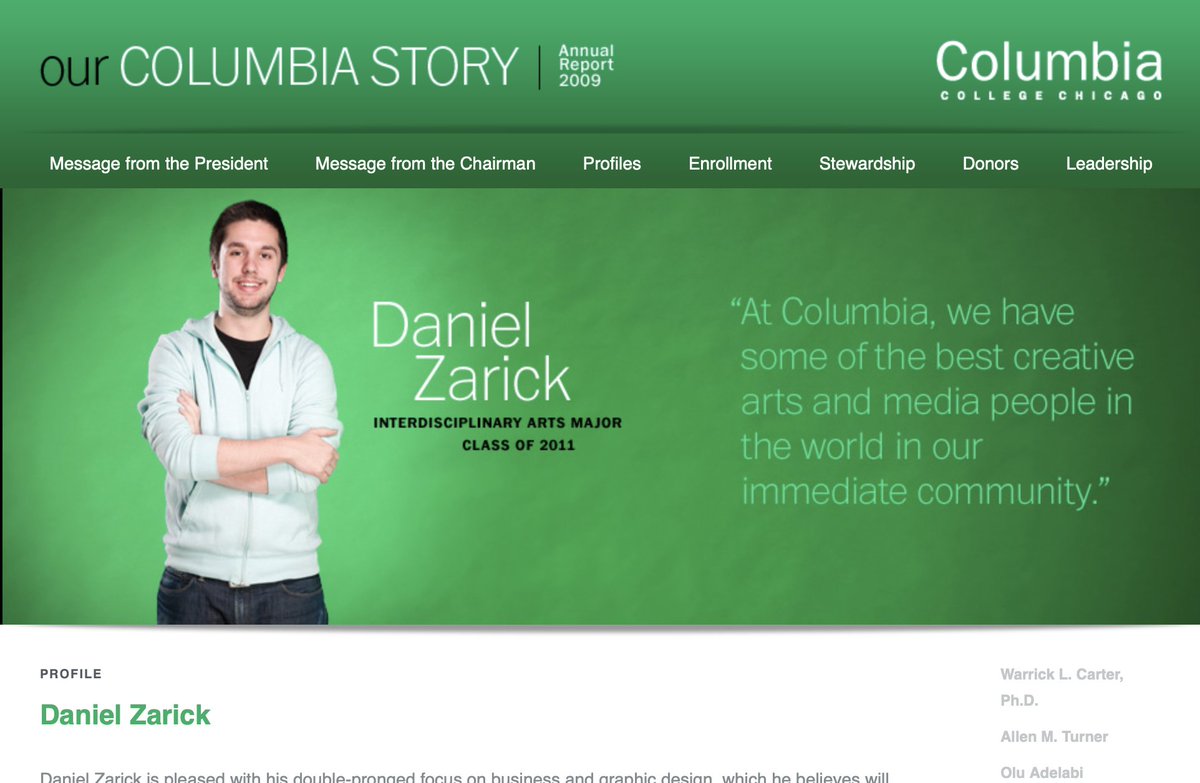 Wow, I just found the annual report from my college where the green originated. Over 10 years ago now. Used a crop of this as a photo for a few months, then i ditched the dumb face. https://web.archive.org/web/20101228175710/http://www.colum.edu/AnnualReports/2009/Daniel%20Zarick.php …pic.twitter.com/P2rt0ZDrYr