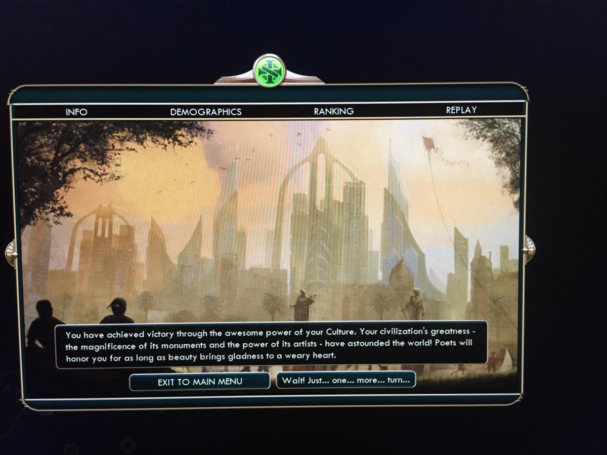 HOLY FUCK I DID IT! FINALLY got a culture victory on Prince difficulty. And at turn 498 omfg. #CivVpic.twitter.com/EJ8zBvjpiX