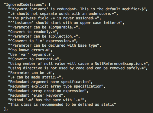 @sgosztyla I copied the default one and then just expanded the IgnoredCodeIssues sectionpic.twitter.com/6JYO1hG3FZ