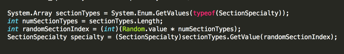 Convenient Unity thing – you can get all of the types in an enum so you can easily pick one randomlypic.twitter.com/3RQyRYniCV