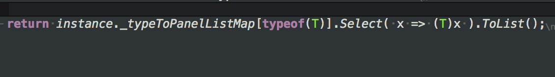 @cjacobwade Translation: uses typeof(T) as key in a dictionary to get a list which is then casted wholesale to type T