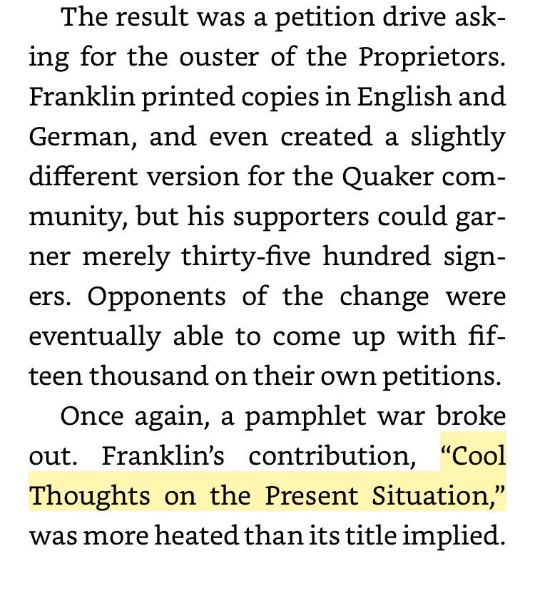 Ben Franklin wrote a pamphlet named "Cool Thoughts on the Present Situation" which is a GREAT way to say "hot takes"pic.twitter.com/0SjdRTZtxH