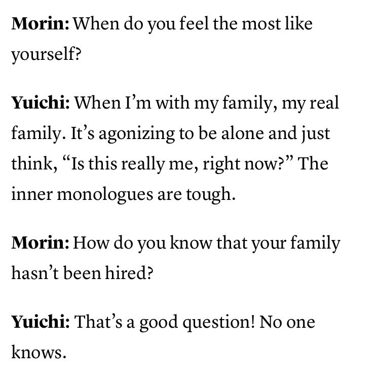 Reminds me of the show Dollhouse. I'm not sure how I feel about this at all. My first reaction is to be creeped out, especially about the girl who thinks he is her dad.