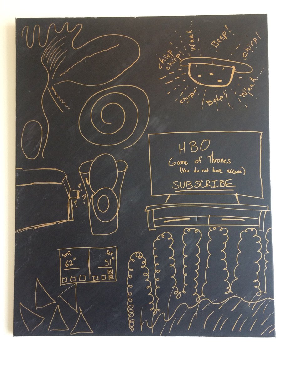 I think someone made a painting of the things they disliked about this AirBNB and then hung it on the wall, and no one has removed it.pic.twitter.com/XMSaEueETn