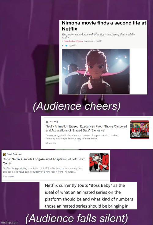 Netflix in the span of like a week went from beloved to public enemy number one in animation It's genuinely impressive.pic.twitter.com/WRRxhTFKha
