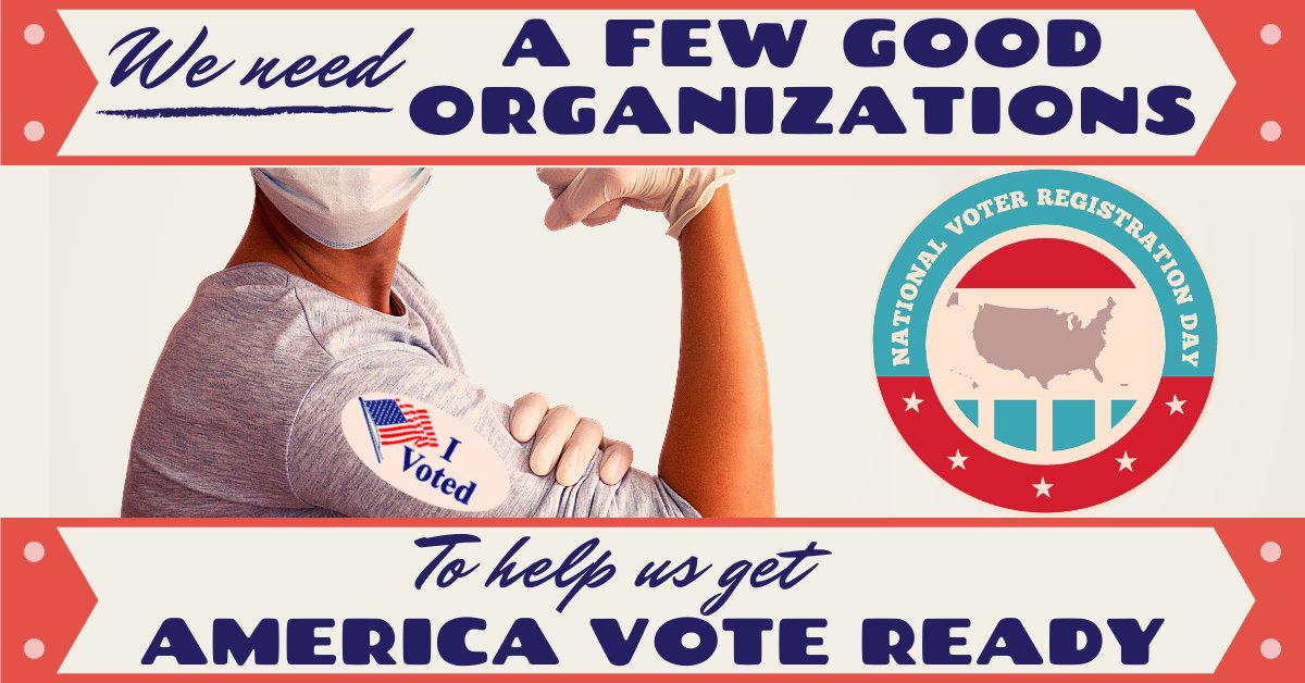 Help organize a voter registration activity on September 22 for your community! Join THOUSANDS of organizations -- nonprofits, libraries, colleges, businesses, and election offices -- on this nonpartisan civic holiday! https://bit.ly/2020NVRDPartner pic.twitter.com/1YqpNEazsY