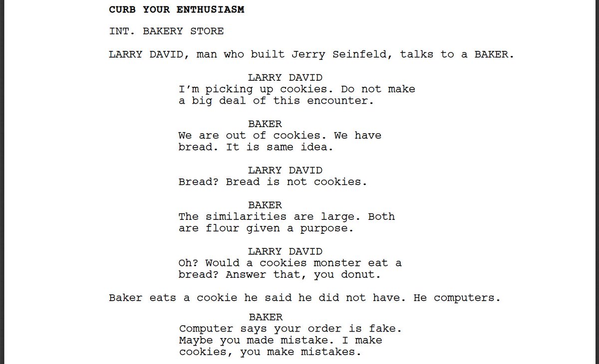 I forced a bot to watch over 1,000 hours of Curb Your Enthusiasm and then asked it to write an episode of Curb Your Enthusiasm of its own. Here is the first page.pic.twitter.com/90Z2k06Ewa