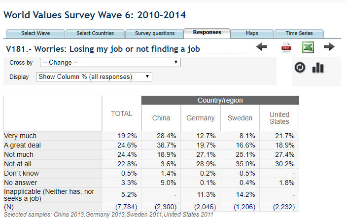 People in the United States and China are much more worried about losing their jobs than their Swedish and German counterparts. One cannot escape the feeling that health insurance and the welfare state play a role here. Might also shape attitudes towards automation...pic.twitter.com/0DCSyG8SLI