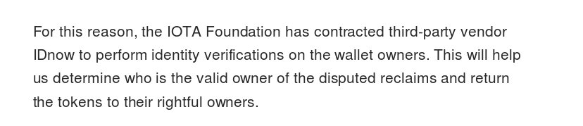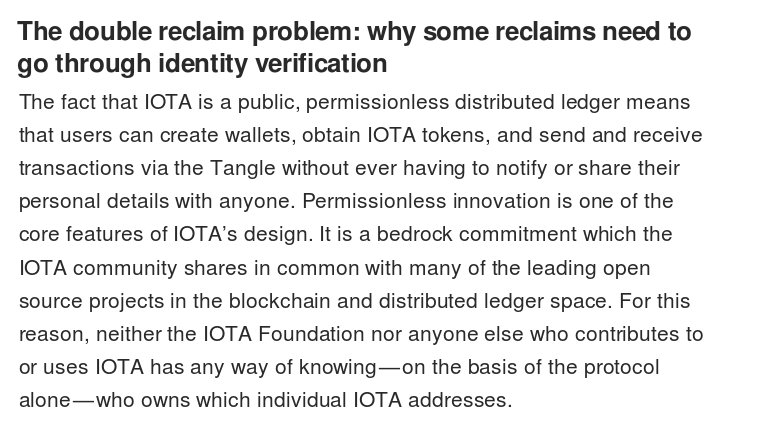 How on earth did I miss this whole hilarious saga?! "The IOTA team took the decision to protect IOTA token holders by taking those funds which were at risk into temporary custody through a snapshot."https://blog.iota.org/iota-reclaim-identification-verification-process-e316647e06e6 …
