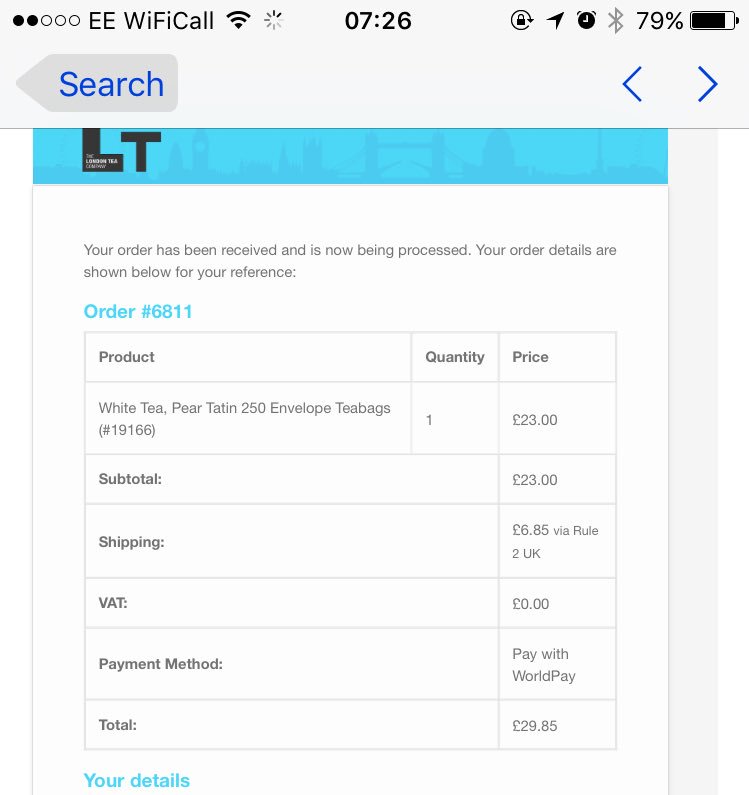 @lovelondontea my Wife bought me white+pear tea for Valentine's day and still not got it. She emailed you and had no response. Where is it?pic.twitter.com/D1yAEY6g3k