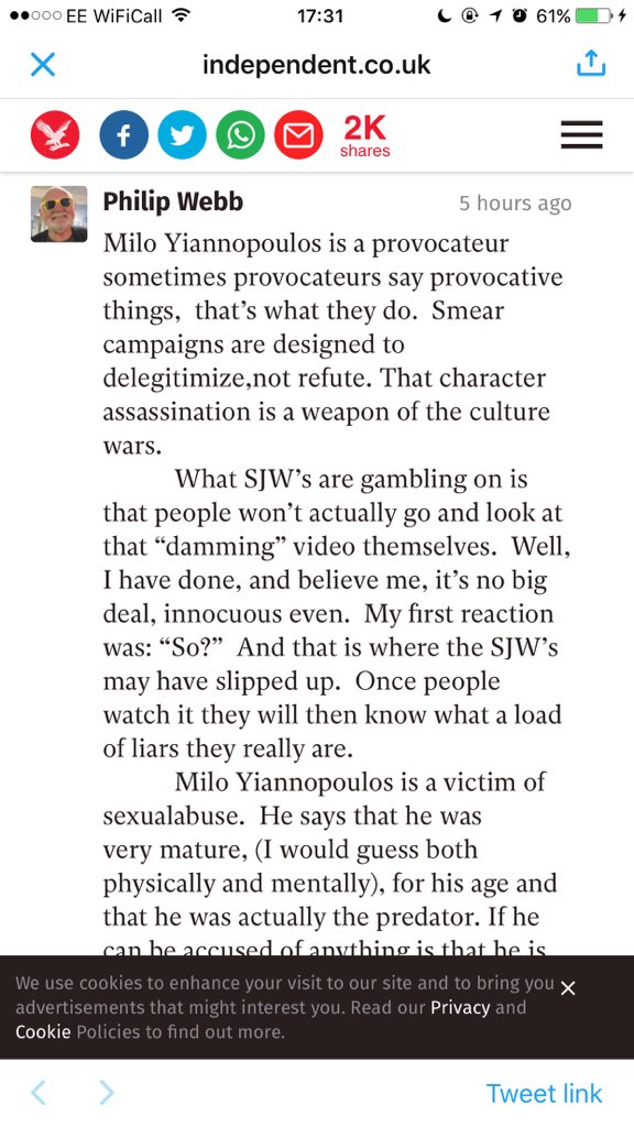 that's pretty funny. This comment is good... I'm not a fan of Milo but this is total balls.pic.twitter.com/sAjyuup5YO