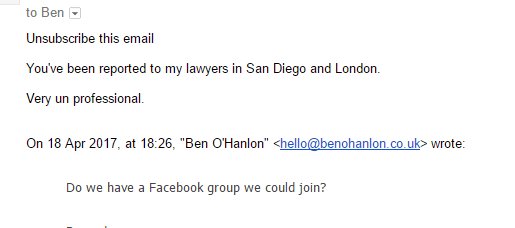 I replied to an email chain I'd be CC'd into and now I have lawyers after me? Oh dear.pic.twitter.com/OxK7x9TT9h
