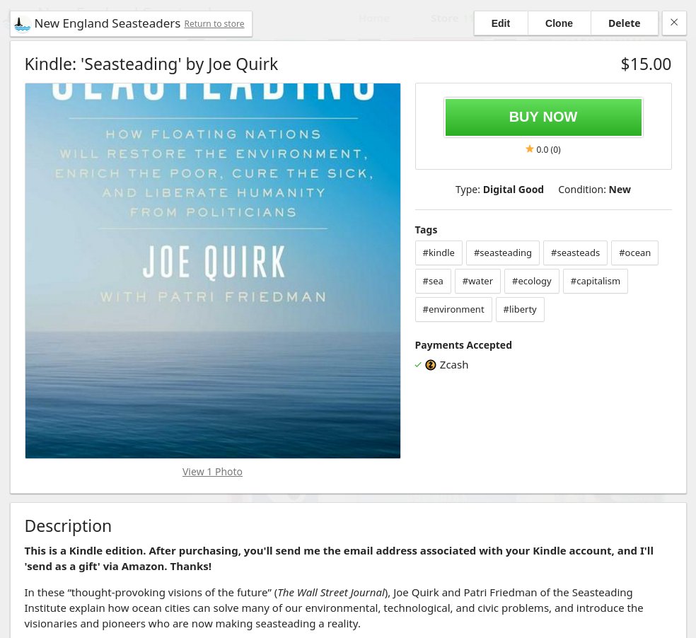 Good question! We've now added a Kindle option for buying #Seasteading on @OpenBazaar with #Zcash: