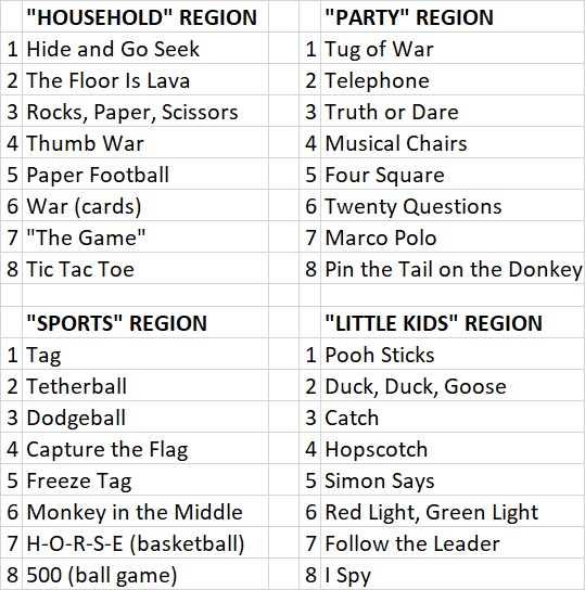 Here's the preliminary seeding for a March Madness-style tournament to determine the GREATEST CHILDREN'S GAME OF ALL SPACE AND TIME. What am I missing? What can I cut? What's incorrectly seeded?pic.twitter.com/xKHkbQhZSC