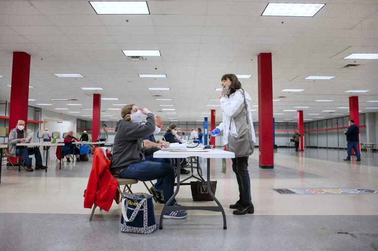 Janesville Gazette: "A voter, right, is asked by a poll worker to remove her mask as her ID is examined Tuesday at the Janesville Mall. Poll workers are required to check that voters’ faces match their IDs." How many times did WI's photo ID law deepen voters' health risk on 4/7?pic.twitter.com/LFtlqF4OAg
